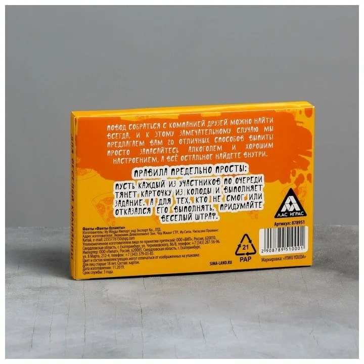 Купить игра для компании "фанты буханты" 20 карт от 100 руб. с доставкой до пункта выдачи в Ангарске. Интернет магазин ДекаМаркет. Оплата при получении.